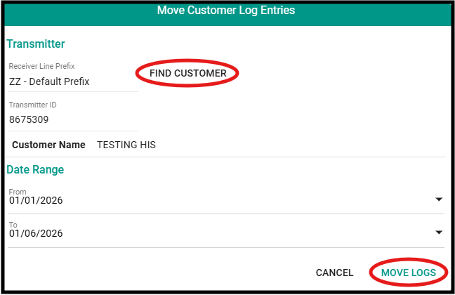 - Enter the Receiver Line Prefix and Transmitter ID and click Search. This should load the customer record name where the signals will land.